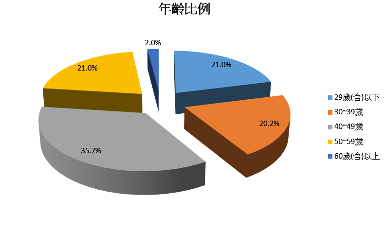 | 29歲(含)以下 | 53 | 21.0% |